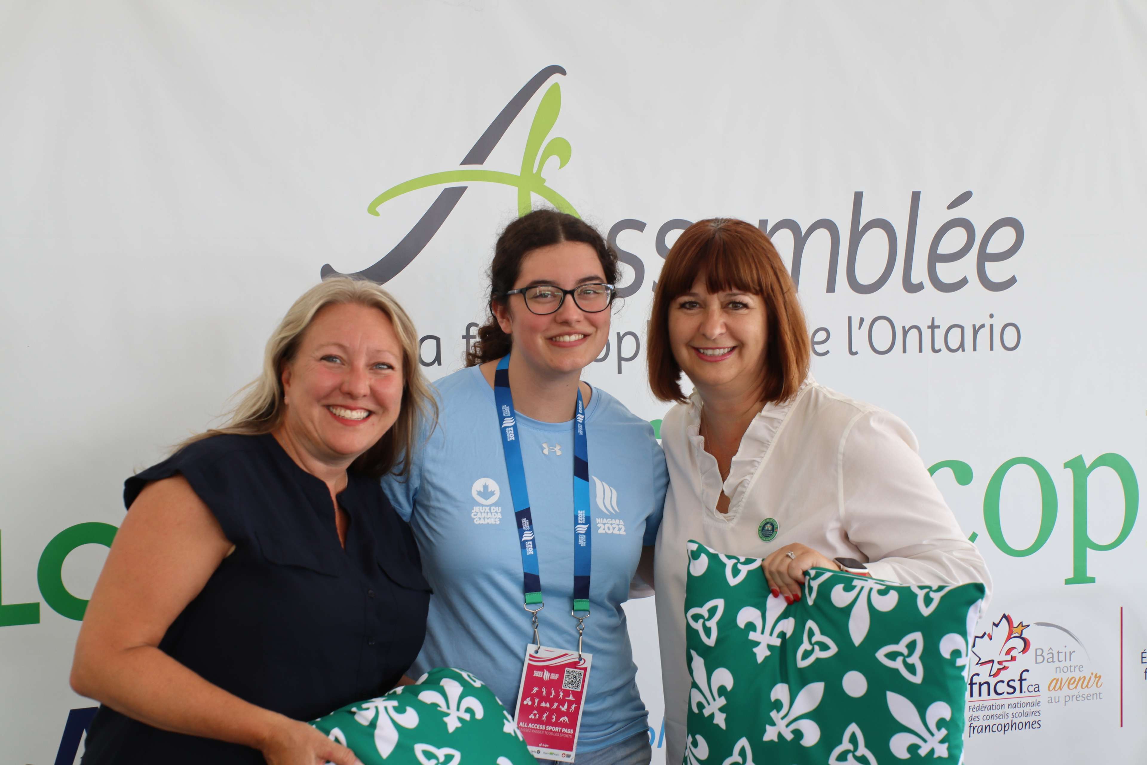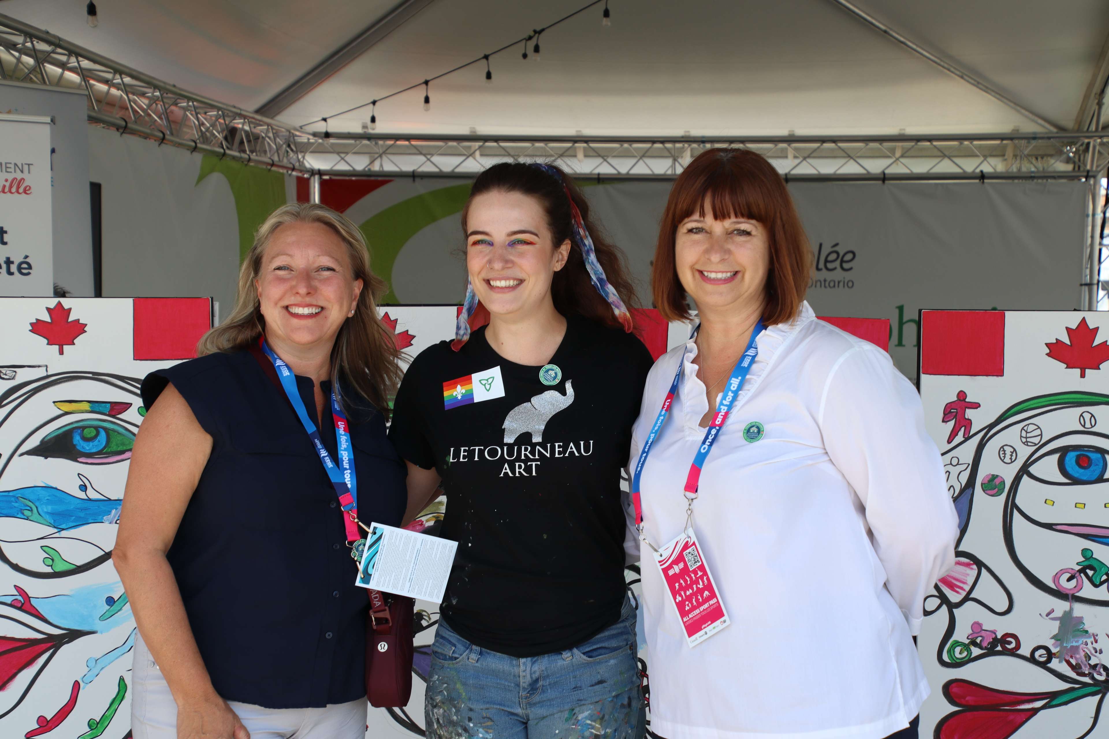 Nos deux invitées ont été impressionnées par l’ampleur du Pavillon, de l’Interaction avec le public et surtout de toile, « Les visages des Jeux du Canada à Niagara », complétée par les enfants et les athlètes de passage au Pavillon.