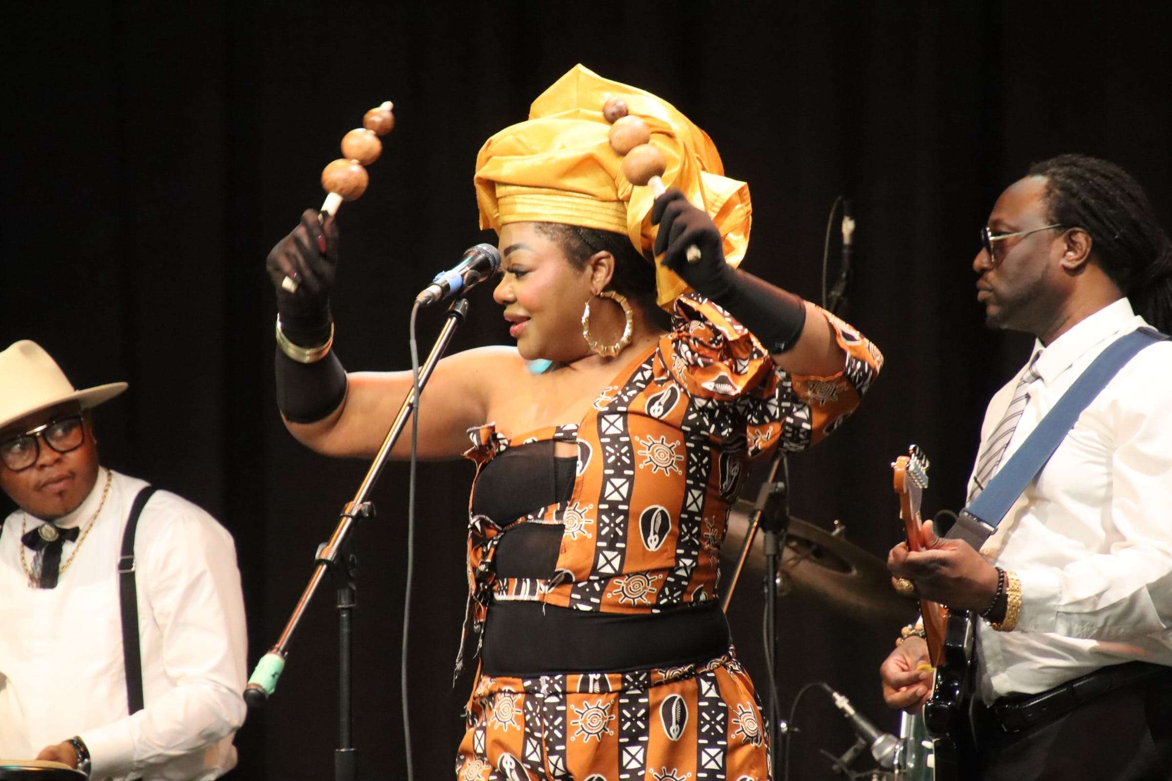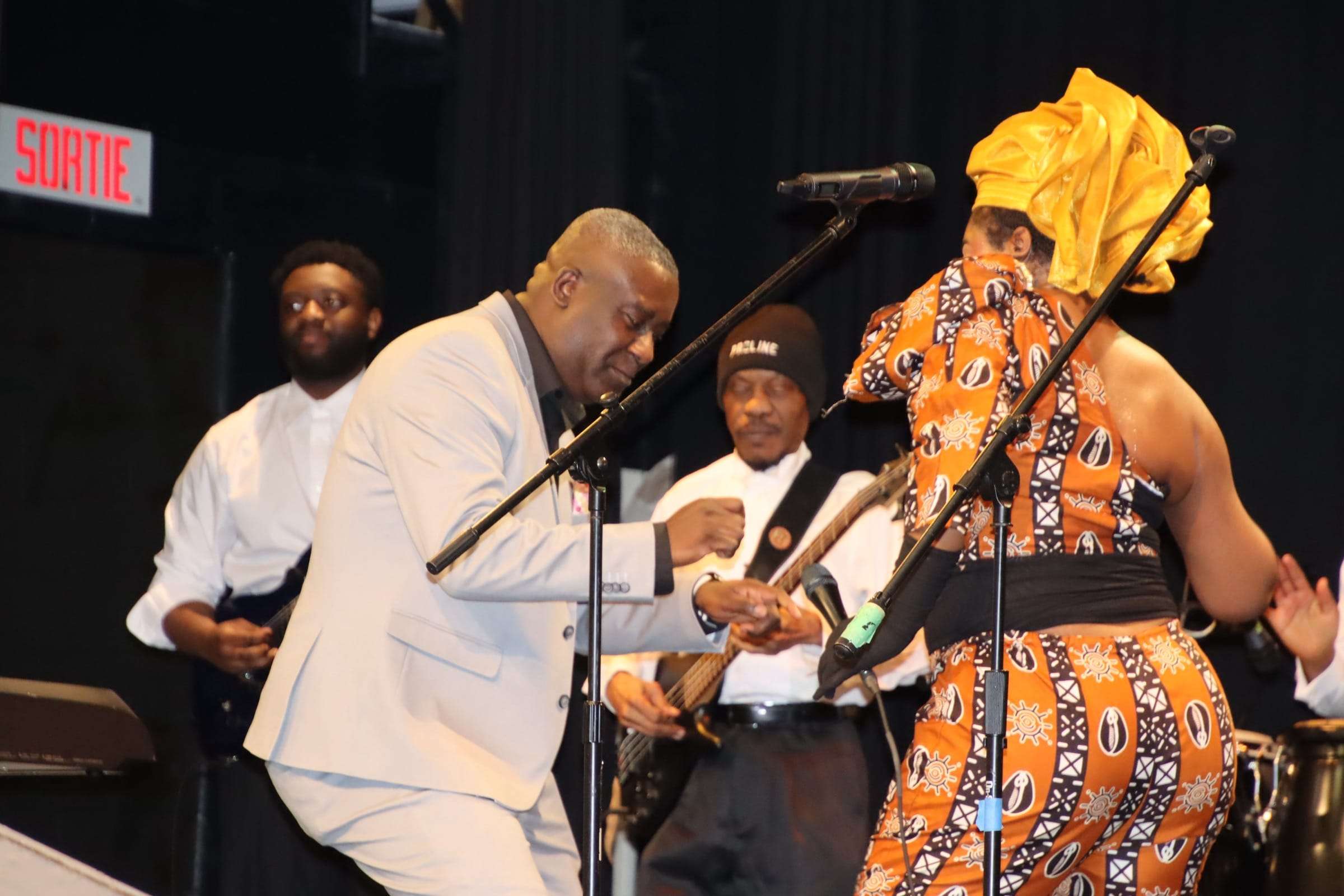 Le programme culturel commençait vers 20h sous la direction de la maîtresse de cérémonie, Désirée Gnégbé. Premier au programme, l’humoriste Said Ben, a su bien faire rire les gens par son jeu sur les mots. L’artiste congolaise populaire, Miss Blandine, suivait au programme, accompagnée de 6 musiciens de Toronto. Reconnue pour son interprétation émouvante et narrative de la rumba congolaise, Miss Blandine a fait danser les gens pendant la durée de son spectacle. La soirée prenait fin avec la présentation de Sérénade Mizik, un groupe haïtien d’Ottawa. Bien connu pour leur répertoire de musique vivant et vibrant, les gens ont foulé la piste de danse pleinement immergés par le rythme de l’interprétation musicale de Sérénade Mizik. Le gala de clôture du Festiv’Ébène fut un grand succès grâce au travail des bénévoles qui font partie de l’équipe de Maman Fété. Les bénévoles du Griffon sont fiers de contribuer au succès de ces grands événements.